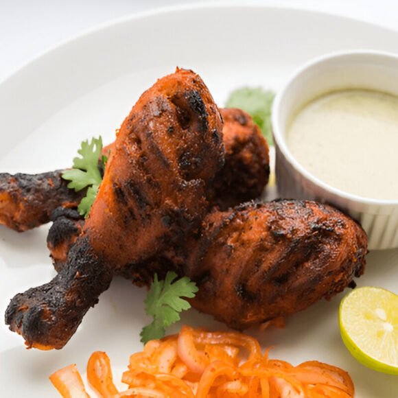 Succulent chicken drumsticks marinated in a blend of spices and yogurt
